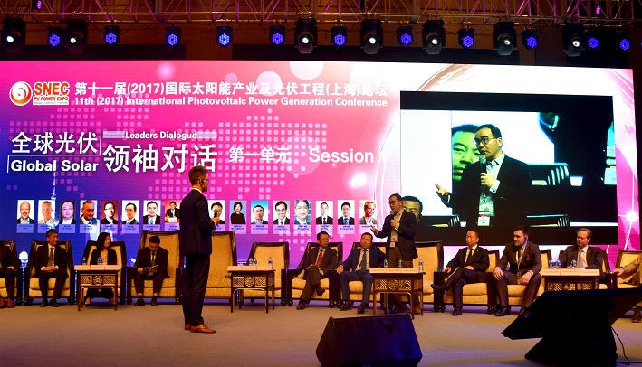 On April 18th, Global Solar Leaders Dialogue, a significant event during SNEC 2017 was convened grandly in Shanghai. PhD YANG Liyou, General Manager of JINERGY, the leading PV modules manufacturer of Shanxi Province, delivered a keynote address themed by “LCOE Drives Continuous Industrialization Technology Progress” and attended the gloabl solar leaders dialogue themed by “Global Market Trends”.