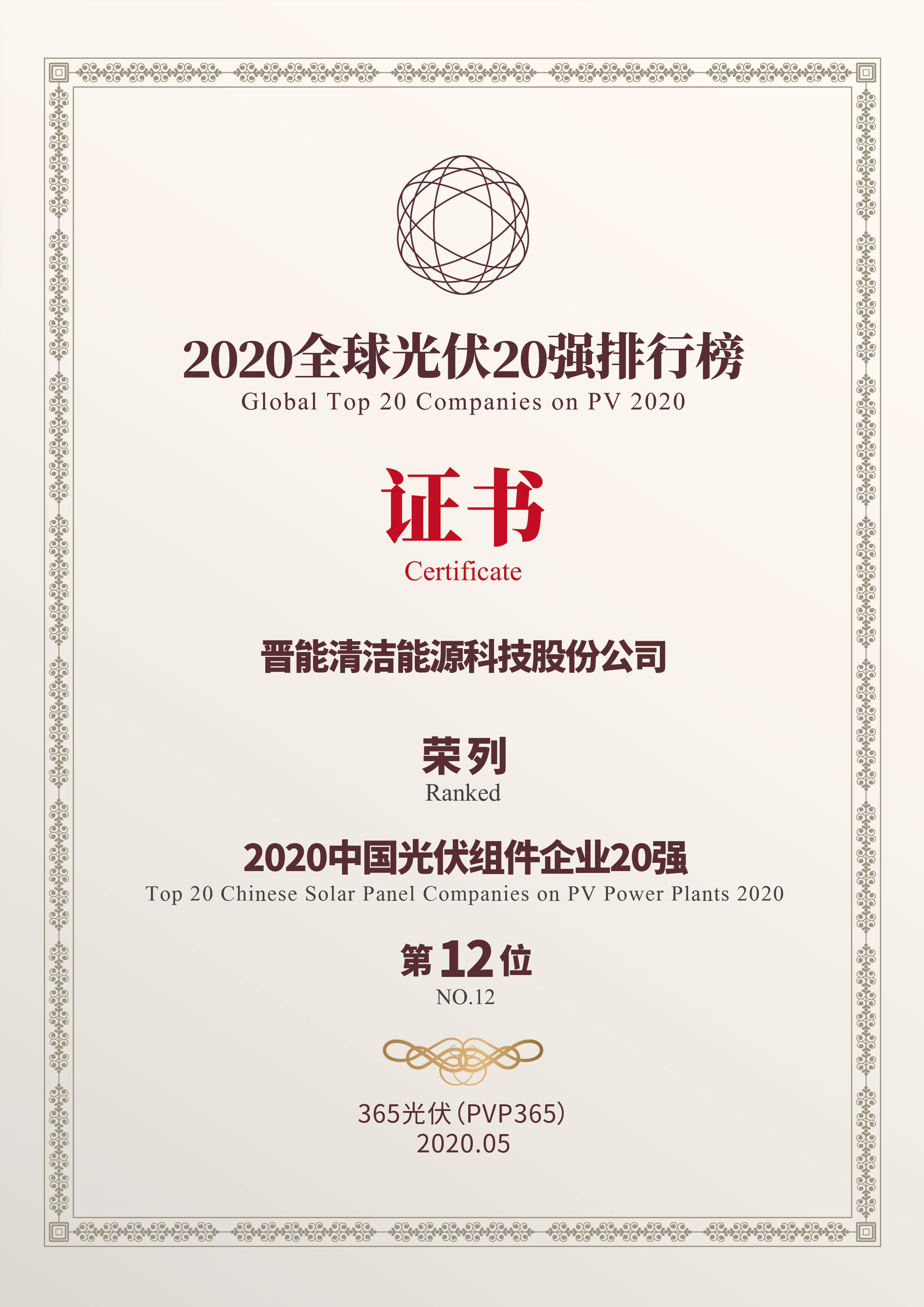 On May 10, “China Brand Day Series Activities”— the First China Brand Cloud Summit 2020 was successfully held. At the summit, the seven major lists of Global Top 20 Companies on PV 2020 were released. By virtue of its strong technical strength and excellent shipment performance, Jinergy ranks among the Top 20 Chinese Solar Panel Companies 2020. It is the fifth consecutive year for Jinergy to win this honor, which demonstrates that Jinergy’s brand strength is highly recognized by the industry.